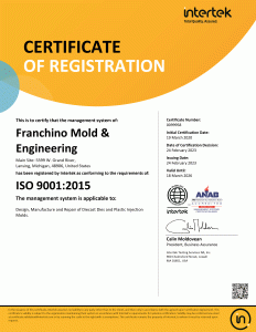 Click to view larger: ISO Cert_Franchino Mold & Engineering